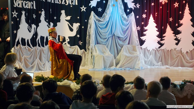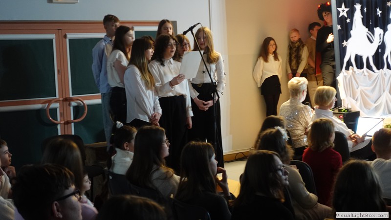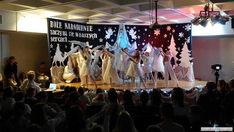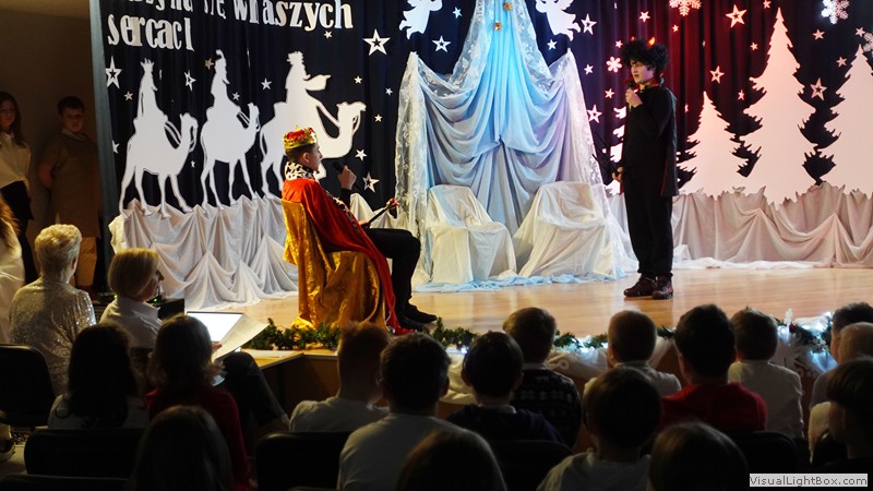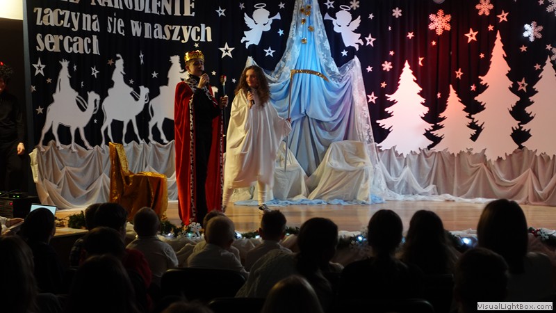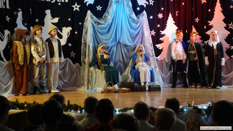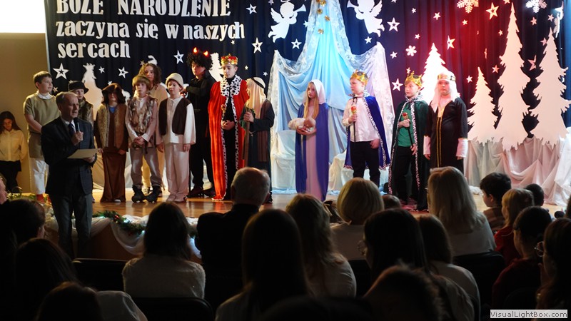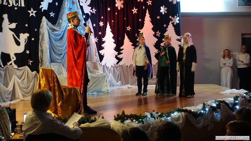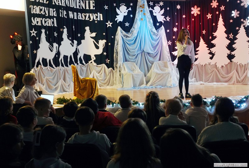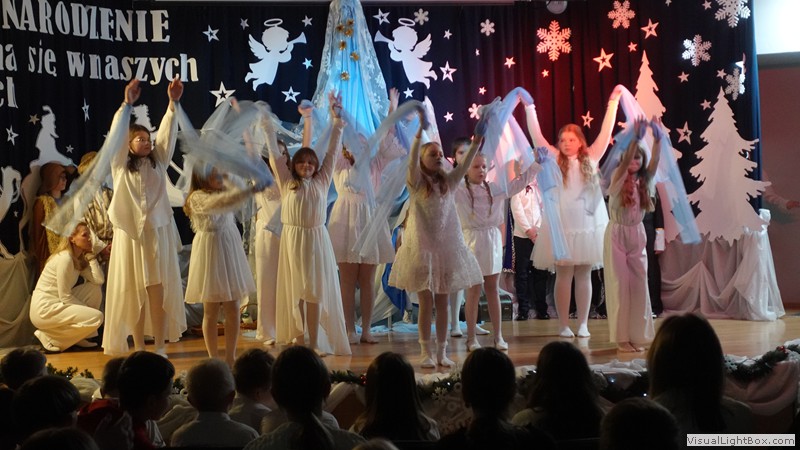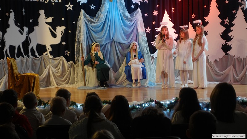 Historia narodzenia Dzieciątka Jezus opowiedziana została przez młodych artystów z ogromnym zaangażowaniem. Usłyszeliśmy i obejrzeliśmy najważniejsze wydarzenia towarzyszące narodzinom Jezusa. Nie zabrakło również odniesień do współczesności, do walki diabła i śmierci o duszę ludzką. Dopełnieniem tych historii był taniec w wykonaniu uczennic klas 4 przygotowany pod kierunkiem p. Magdaleny Hurec.
